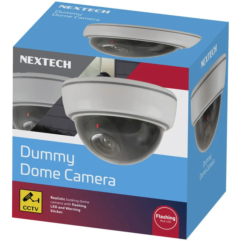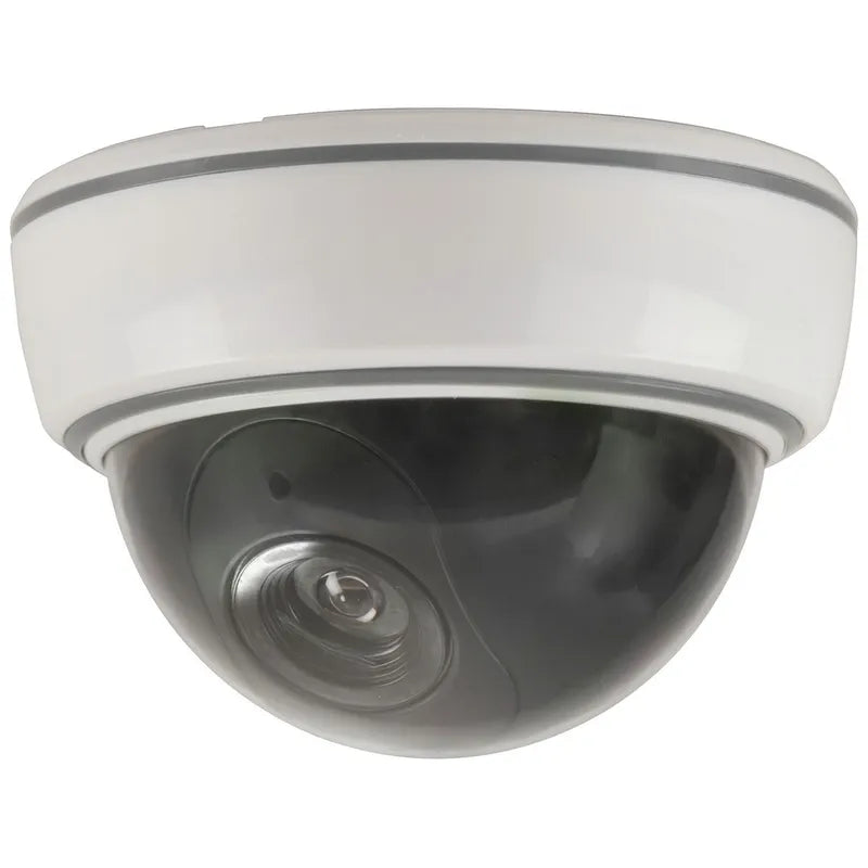 A simple and effective realistic-looking dome camera that features a high brightness flashing red LED. Great for home, office, schools or any location to discourage thieves. Includes a CCTV security sticker and mounting hardware.
